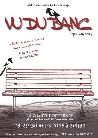 C’est un peu la vie qui passe… Des situations, des rencontres, des dialogues qui racontent la vie avec sa légèreté, son grotesque et son tragique. Tantôt émouvant, tantôt cocasse mais toujours un peu grinçant, Vu du banc se présente sous forme de sketches où la drôlerie court du même pas que l’insolite, à la limite de l’absurde. Cette chronique impitoyable des conflits et des travers de notre civilisation s’articule autour de l’incommunicabilité entre les êtres avec un humour malicieux, parfois noir, parfois empreint de tendresse.